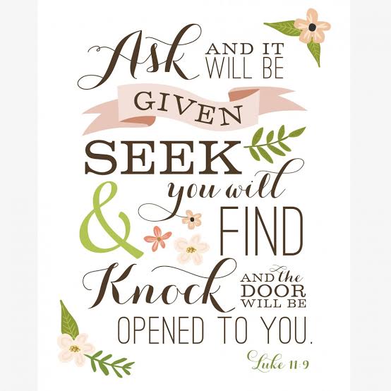 “Ask and it will be given to you; seek and you will find; knock and the door will be opened to you. 8 For everyone who asks receives; the one who seeks finds; and to the one who knocks, the door will be opened.” Mathew 7:7-8